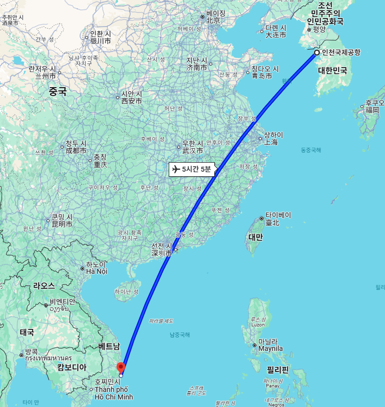 - 부산 - 나트랑: 약 5시간 (경유편)