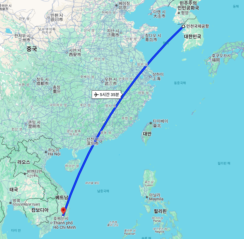 - 인천 - 호치민: 약 5시간 30분