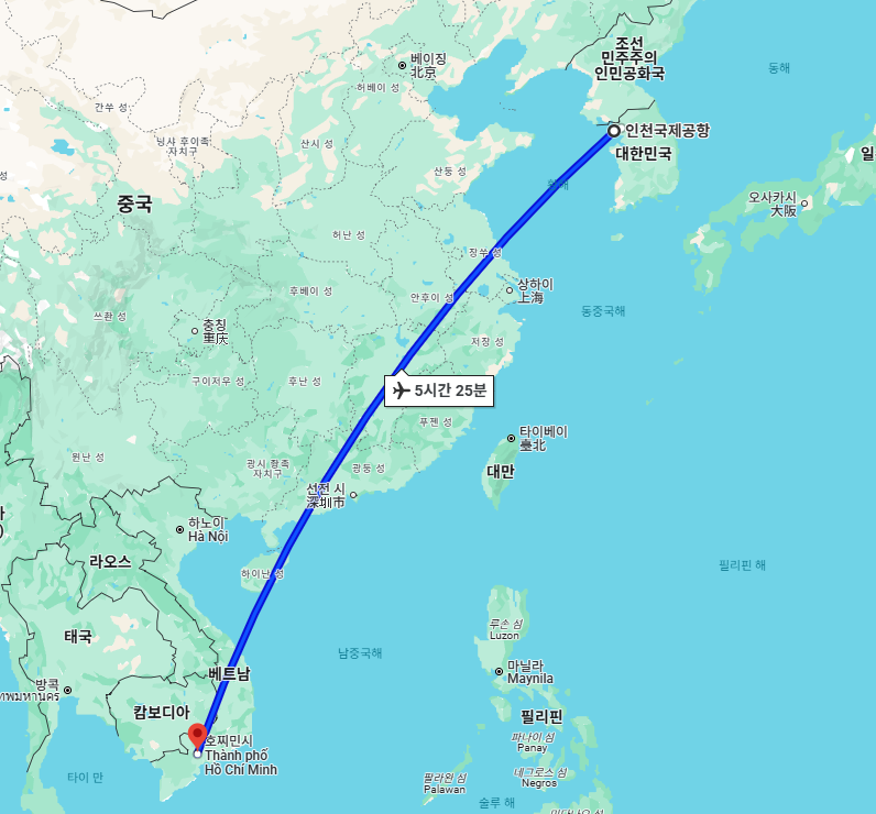 - 인천 - 호치민: 약 5시간 30분