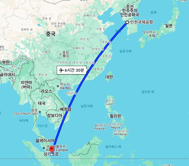 한국에서 싱가포르까지의 비행 정보